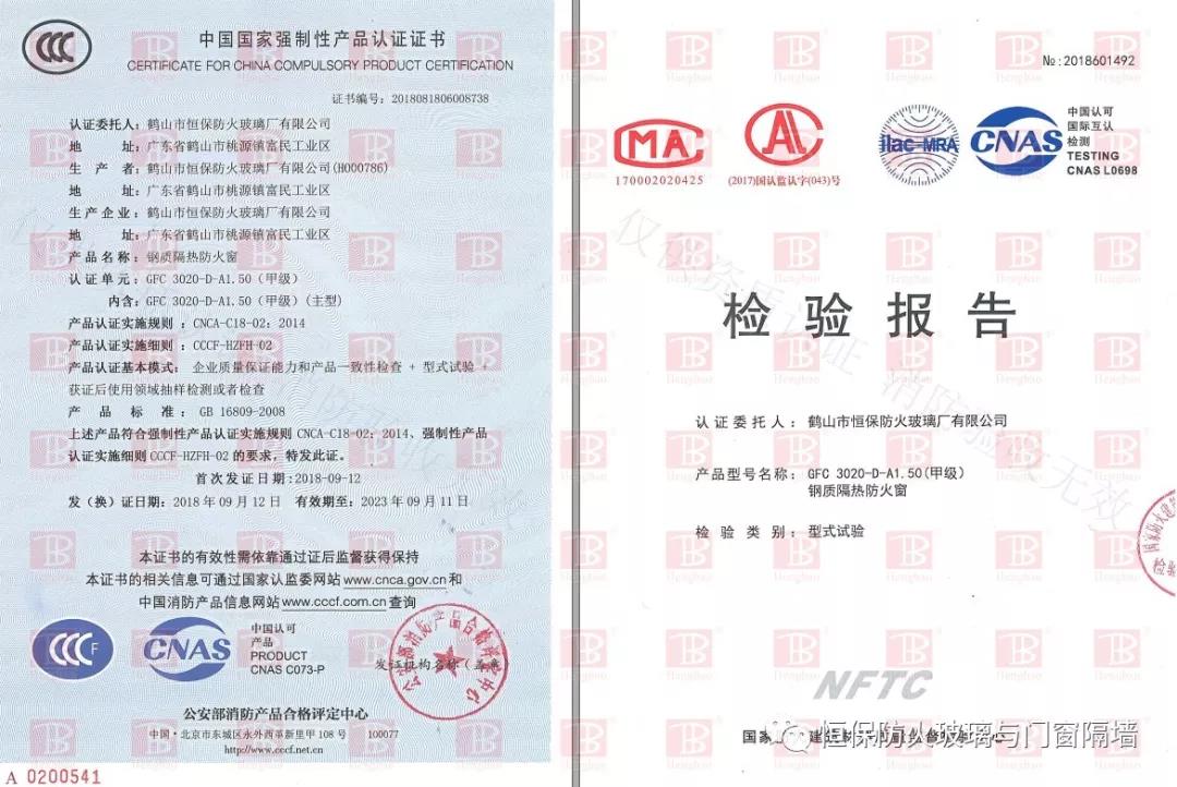 鶴山恒保經(jīng)過多年努力,終于解決這一行業(yè)難題:成功通過超大甲級防火窗國家CCC認(rèn)證,3000mmX2000mm超大尺寸版面,整窗都能滿足防火完整性和防火隔熱性1.5小時的要求,既符合建筑設(shè)計防火規(guī)范的要求,又具有窗的通透性,美觀實用。完美解決了地鐵高鐵消防控制室超大甲級防火觀察窗合法化的問題!