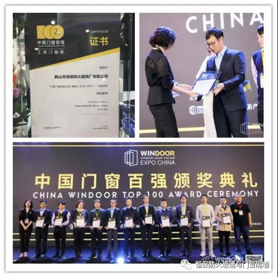 同期3月5日上午,由鋁門窗幕墻新產(chǎn)品博覽會、中國房地產(chǎn)業(yè)與門窗幕墻聯(lián)盟、中國建筑金屬結(jié)構(gòu)協(xié)會鋁門窗幕墻委員會等單位聯(lián)合評審,經(jīng)過多家地產(chǎn)商和業(yè)主的選材經(jīng)驗共享認(rèn)可,鶴山恒保公司獲得“中國門窗百強(qiáng)工程門窗類(2018-2019)榮譽(yù)稱號”。