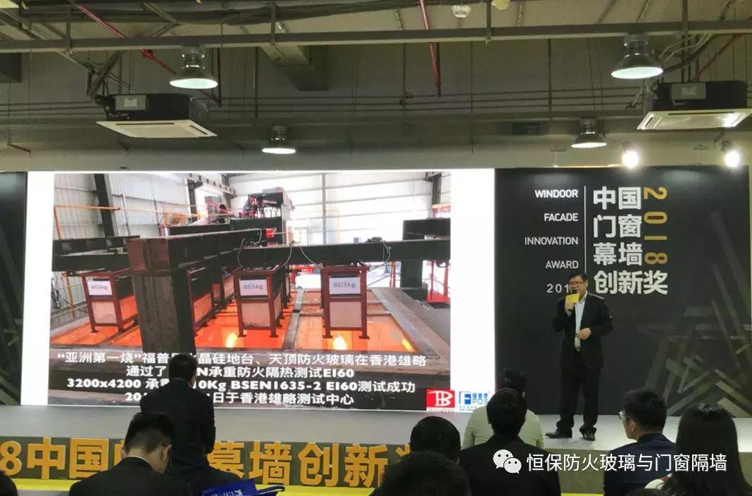 在本次展會中,恒保·福普思公司總經(jīng)理陳沃林還參加了“2018中國門窗幕墻創(chuàng)新獎--星品發(fā)布會” 活動,演講主題為“防火玻璃地臺采光頂?shù)臏y試與應用”,獲得了現(xiàn)場聽眾的肯定與支持,并在會后解答了各方來客的問題。