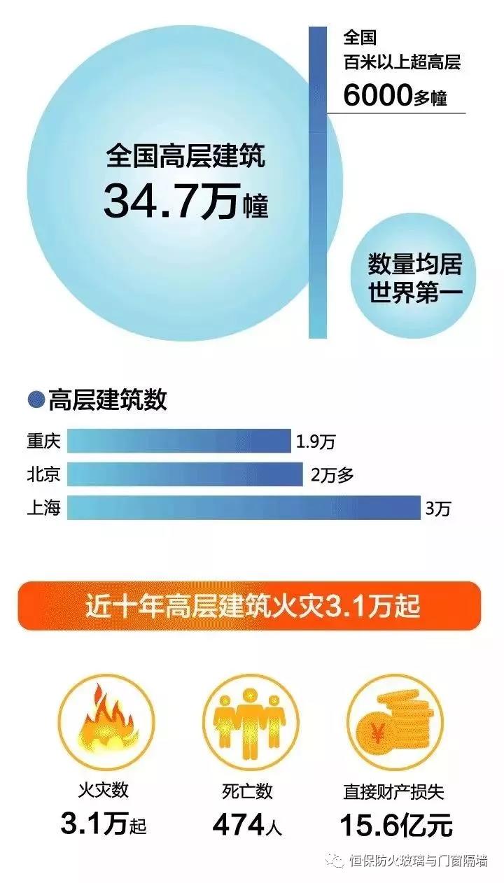 公安部消防局通報(bào)了中國(guó)高層建筑火災(zāi)的數(shù)據(jù)。數(shù)據(jù)顯示,全國(guó)擁有8層以上、超過(guò)24米的高層建筑34.7萬(wàn)幢,百米以上高層6000多幢,數(shù)量均居世界前位。