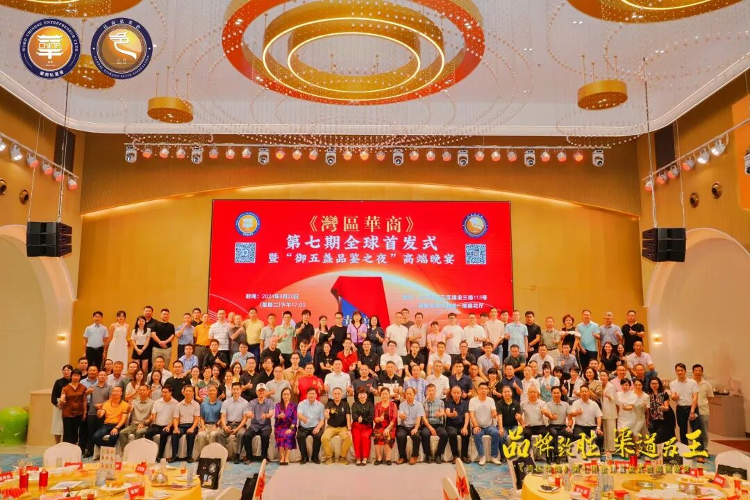 2024年8月20日晚,《灣區(qū)華商》第七期全球首發(fā)式暨“御五盞品鑒之夜”高端晚宴在僑都江門滿宴京海大酒樓隆重舉行?,F(xiàn)場來自灣區(qū)各地的大咖云集,其中包括廣東省消防協(xié)會(huì)代表團(tuán)、廣東省玻璃行業(yè)協(xié)會(huì)代表團(tuán)、深圳市建筑門窗幕墻學(xué)會(huì)代表團(tuán)以及邑商&華商私董會(huì)企業(yè)家代表團(tuán)等近150位嘉賓。大家齊聚一堂,高朋滿座,共同見證這高光時(shí)刻,全程高能!